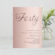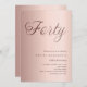 A modern, stylish invitation for a 40th birthday party. Rose gold gradient background and the word Forty written with elegant large script letters in dark rose gold. Personalise and add a name and party details.