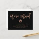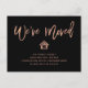 These modern and glam new address moving announcement features elegant, faux rose gold handwritten script typography that says "we've moved", on a dark black background. A little matching house also decorates the front, and there is room to add a message on the back if you wish with more information about your new home. A simple and stylish way to let friends and family know that you have moved!