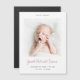This simply charming photo birth announcement magnet card features a contemporary design that lets you easily customize it to suit your style. At the very top, we've added 'HELLO, WORLD' but please feel free to change that to whatever strikes your fancy, be it 'WELCOME' or 'INTRODUCING', etc. This text is in black, and you can change it if you'd like. In choosing a script for your baby's name, we were looking for something informal, with personality but also an orderly flow that's easy to read, and we found something we loved. We added an elegant shade of rose gold to further accentuate this part of the design. Having said this, you can change the color and font of this or any other text according to your own taste. If you prefer a more minimalist look, you can delete without replacing any of our sample stats-you might not want to include the time of day or length, for example. The default color of the text below the name is dark gray. Use the intuitive design tools and your favorite photo and your inspiration to personalize this custom birth announcement magnetic card and make it uniquely yours!