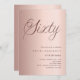 A modern, stylish invitation for a 60th birthday party. Rose gold gradient background and the word Fifty written with elegant large script letters in dark rose gold. Personalise and add a name and party details.