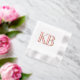 Bold interlocking serif initials in rose gold foil make a striking monogram statement on these minimalist wedding napkins. The clean, classic two-letter design adds a refined personal touch to your cocktail hour, reception, or bridal shower. Customise with your initials for an effortlessly chic detail.