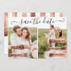 This elegant, chic, and modern wedding save the date card is perfect for the sweet, elegant, and romantic vibe. It features a custom handwritten black script font, faux printed rose gold foil brushstrokes, and two personalised photos on top of a simple white background. It's pretty, modern, sweet, unique, and minimal; the perfect design to announce the date of your wedding.