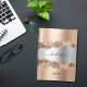 Rose gold and faux silver metal and agate, marble stone print as background. Personalise and add your name. The name is written with a modern hand lettered style script.