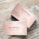An elegant and glamourous business card on a rose gold faux metallic looking background decorated with faux silver glitter drip on front. Elegant black hand lettered style script. Personalise and add your name, title, phone number, mail and website adsress.
