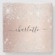 A rose gold faux metallic looking background. Decorated with faux silver glitter drips and glitter dust. Personalise and add a name. The name is written with a modern hand lettered style script with swashes.