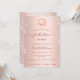 A modern, elegant and invitation. A rose gold background decorated with faux silver sparkles and a cap. Personalise and add a name, year, and party details.