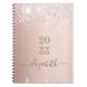 A rose gold background decorated with faux silver sparkles. Template for a year (upside down) Personalise and add a name. The name is written in grey with a large modern hand lettered style script with swashes. Perfect for school, work or organising your personal/family life.