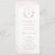 Monogrammed initials framed by elegant crest and hand illustrated botanical leaves, your event details in elegant script and classic font, simple and luxury. Great faux rose gold and blush pink programs for modern classic wedding, simple formal wedding, elegant botanical garden wedding.