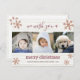 Rose Gold Snowflake 3 Photo Merry Christmas Postcard