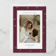 Share holiday greetings with these photo Christmas cards featuring your favourite photo set on a modern and minimal background of rose gold foil snowflakes on rich burgundy plum. An editable message area lets you customise your holiday greeting in modern lettering. Add your family name or names beneath.
