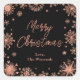 This elegant and glamourous sticker can be personalised with your family name. It features watercolor rose gold faux glitter snowflakes and sparkles on a black background. The text combines handwritten script and modern sans serif fonts for a classy and sophisticated look. This is perfect for giving Christmas gifts and party favours.