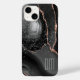 This pretty phone case features a dramatic abstract design in black and rose gold faux glitter. Tiny star confetti gives a glittery effect, with your monogram in pale gray against darker gray and black at the bottom. Classy!