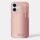 Add a touch of luxury to your life with this chic rose gold iPhone 16 case. Featuring accents designed to look like sparkly diamonds, and personalizable with your name in graceful script, it's a perfect gift for yourself or anyone who appreciates elegance.