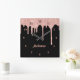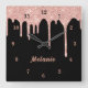 Rose Gold Sparkly Drips Black Clock Custom Name