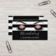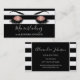 Rose Gold Sparkly Glitter Microblading with Eyebrows and Eyelashes on a Black and White Striped Background Business Card with white hand lettered typography for the monogram. The Rose Gold Microblading Business Card is perfect for Eye Brows, Aesthetician, Eyebrows or Beautician Professional. Please contact the designer for matching items