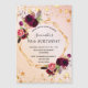 An invitation magnet for a 50 years old, 50th (or any age) birthday party. A rose gold, blush pink coloured ombre background with a faux gold geometric frame. Decorated with dark purple and burgundy flowers, roses and boho style feathers. Faux gold stars dripping. Personalise and add a name and party details. The name is written with a hand lettered style script, black coloured letters.
