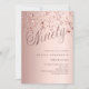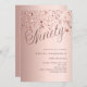 A modern, stylish invitation for a 90th birthday party. Rose gold gradient background and the word Ninety written with elegant large script letters in dark rose gold. Decorated with rose gold stars. Personalise and add a name and party details.