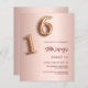 A modern, stylish and glamourous invitation for a girl's Sweet 16, 16th birthday party. A rose gold gradient background. The name is written with a modern dark rose gold coloured hand lettered style script. Personalise and add your party details. Number 16 is written with a balloon style font, script.