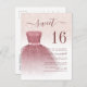 Featuring a pretty blush pink dress and faux rose gold glitter with modern script and popular typography, this birthday invitation is perfect for a princess celebrating her sweet 16th birthday.