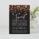 Rose & Black Sweet 16 Birthday Sparkly String Lights "Save the Date" announcement template with party address and RSVP details.