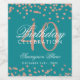 Rose Gold Teal 40th Birthday Glitter Confetti Wine Label