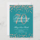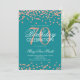 Rose Gold Teal 70th Birthday Glitter Confetti Invitation