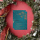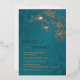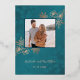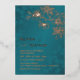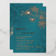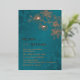 This elegant wedding invitation features rose gold line art floral cherry blossoms on a shimmering teal / turquoise background. Your photo on the backside.