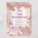Rose gold tropical leaves glittery tiara butterflies calligraphy first birthday invitation design.
