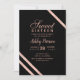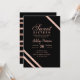 A modern, chic and elegant rose gold typography Sweet sixteen party invitation with rose gold geometric stripes on elegant black