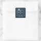 A modern monogram gets glam with intertwined rose gold wedding rings with easy to personalise white text for your initials, married name and wedding date on this classic navy blue square sticker, perfect for envelopes and wedding favours.