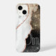 This pretty phone case features a faux white marble with rose gold glitter embellishment on the left side, and your monogram in silver against a black background on the right. Your name is written in pale grey script over the monogram. Over all is an overlay of tiny gold star and silver star shine faux glitter. Unique and elegant!
