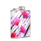 = Vinyl Wrapped Flask, 6 oz. = * Modern Bold Trendy Popular Lady's Bar Flask with a diagonal pattern of rose gold foil , pink black and lavender brush strokes on a white background.