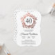 Modern rose gold wreath 40th birthday design. Send out this elegant invitation for your fortieth birthday party celebration. There is a chic black polka dot pattern on the back of the card. If you need any help or matching products, please contact us through our store.