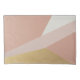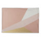 A modern abstract composition featuring intersecting geometric shapes in soft blush pinks, creamy white, and a bold metallic gold. The textured surface adds depth and a tactile element to the minimalist design, evoking a serene and sophisticated atmosphere. Perfect for contemporary interiors or as a digital background.