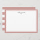 Our chic personalised stationery flat cards have a rosy mauve pink border with your name or choice of personalisation gracing the top in charcoal grey modern script lettering. Cards reverse to horizontal pink and white stripes.