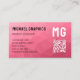 Rose pink geometric mesh pattern QR code Monogram Business Card
