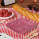 Colour of the year. Magenta pink light geometric mesh pattern.