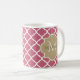 Rose Pink Quatrefoil Pattern With Big Tan Monogram Coffee Mug