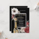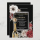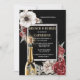 Beautiful white coloured anemone; also known as poppy flowers; together with ivory white and red roses are nestled against pale grey leaves which frame a faux gold bottle of bubbly with a cork exploding out it and a rectangular frame that has text templates for your personalised wording; all set against a midnight black background. The overall feel is stylish; elegant and chic. This is ideal for summer; spring; winter and fall bridal shower events. Feel free to delete or move the templates around and to change the size and style of the fonts if preferred.
