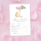 Watercolor elegant rose flower with glass of champagne, pear. "Petals & Prosecco". Matching items available.