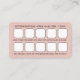 Custom business card featuring pink rose shadow design with sans-serif typography, and classic reward system on the back for customers to receive something, i.e. discount, free item, etc. Click 'Personalise' to add your company details, including name, type of service, phone number, website, address, qr code with text, store hours, additional info, and reward system on the back.