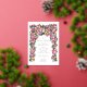 Original illustration of an arbor or trellis covered in pink roses with a few sunflowers peeking out; foil accents choose from three colours. If you want all text in foil, cut and paste the foil layer and change the colour to black. Customise the background colour on front and back. Add a QR code if desired to the backside for registry, website etc