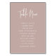 Simple and chic table number cards in Rose Taupe and white make an elegant statement at your wedding or event. Design features "table [number]" in handwritten script lettering, with individual guest names below in timeless serif typography. Design repeats on both sides.