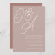 A beautiful typography based monogram wedding invitation featuring your initials in oversized script lettering at the top, in tone on tone shades for a watermark effect. Personalise with your wedding details in classic serif lettering aligned at the lower right. Our Rose Taupe colorway is an elegant mix of earthy neutral pinks, featuring warm white and classic white lettering on a rosy taupe background.