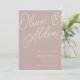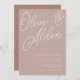 A beautiful typography based wedding invitation featuring your names in oversized script lettering at the top, in tone on tone shades for a watermark effect. Personalise with your wedding details in classic serif lettering aligned at the lower right. Our Rose Taupe colorway is an elegant mix of earthy neutral pinks, featuring warm white and classic white lettering on a rosy taupe background.