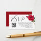 Red roses wedding QR code RSVP enclosure cards. Small cards have a place for your QR code. Send guests to a website online to reply to the wedding invitation. Fill out the paragraph to explain how to do this, and also give guests an alternative to reply, such as e-mail or phone.
