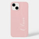 Rose White Elegant Calligraphy Script Custom Personalised Name iPhone 14 Smart Phone Cases features a modern and trendy simple and stylish design with your personalised name in elegant hand written calligraphy script typography on a rose pink background. Designed by ©Evco Studio www.zazzle.com/store/evcostudio