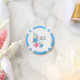 A rose floral mix in pastel pink, blue and green has berries and leaves that form a decorative border edge to the bridal couples monogram. Special thanks to smelltheroses(dot)com for her beautiful illustrations.