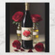 A beautifully arranged wine bottle surrounded by vibrant red roses.