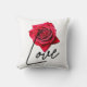 A beautiful floral design with a rose blossom and the word "love". Very simple and elegant in red and black.